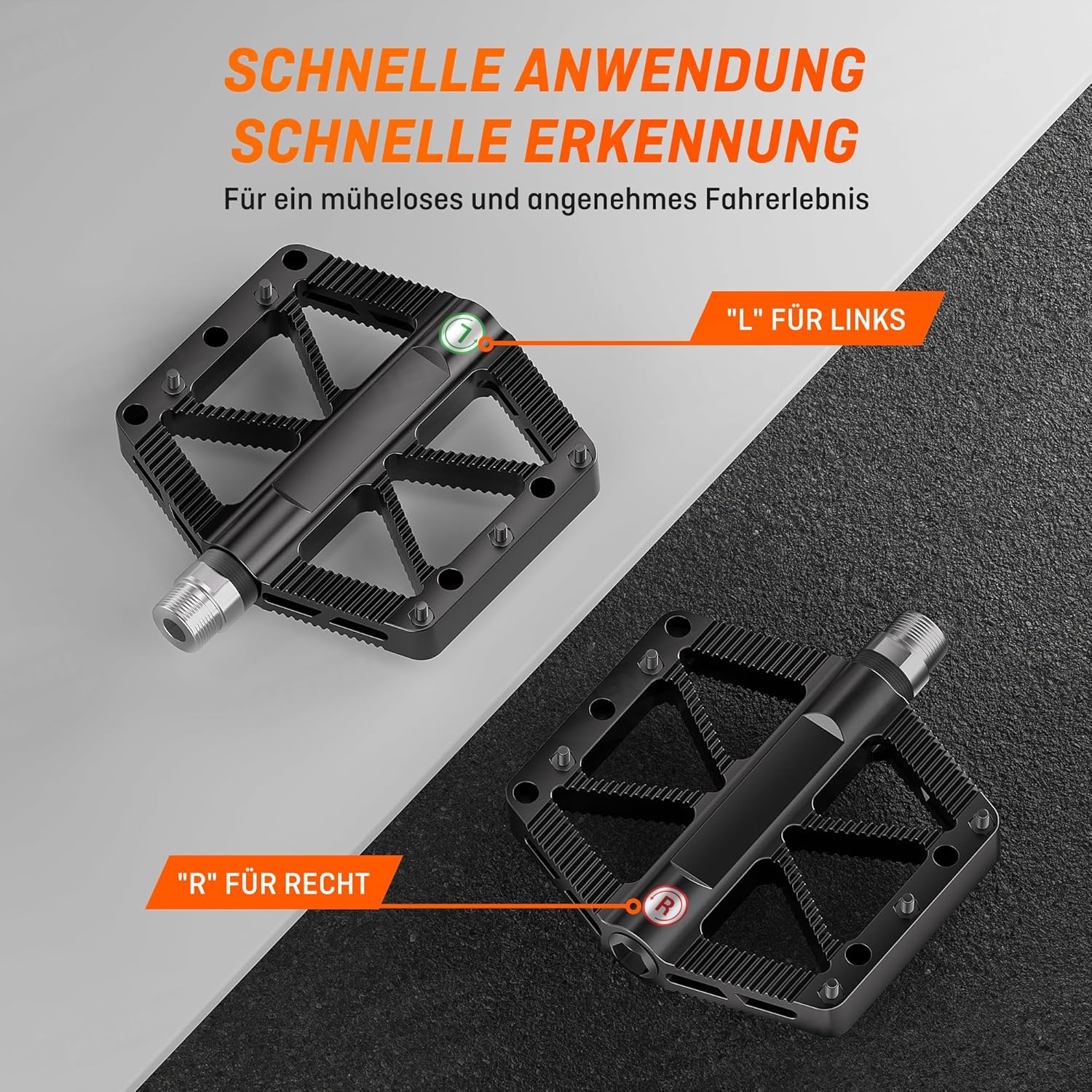 - 【9/16-Zoll-Fahrradpedale】Kompatibel mit den meisten Fahrradtypen - perfekt für die meisten Fahrräder, Mountainbike, Rennrad, Stadtrad usw. - Diese Pedale passen sich einer breiten Palette von Fahrstilen an. Egal, ob Sie täglich pendeln, am Wochenende abenteuerlustig sind oder als Freizeitfahrer unterwegs sind, sie bieten zuverlässige Traktion und Stabilität auf allen Arten von Gelände. Ideal für Fahrer, die Anpassungsfähigkeit und Vertrauen schätzen.