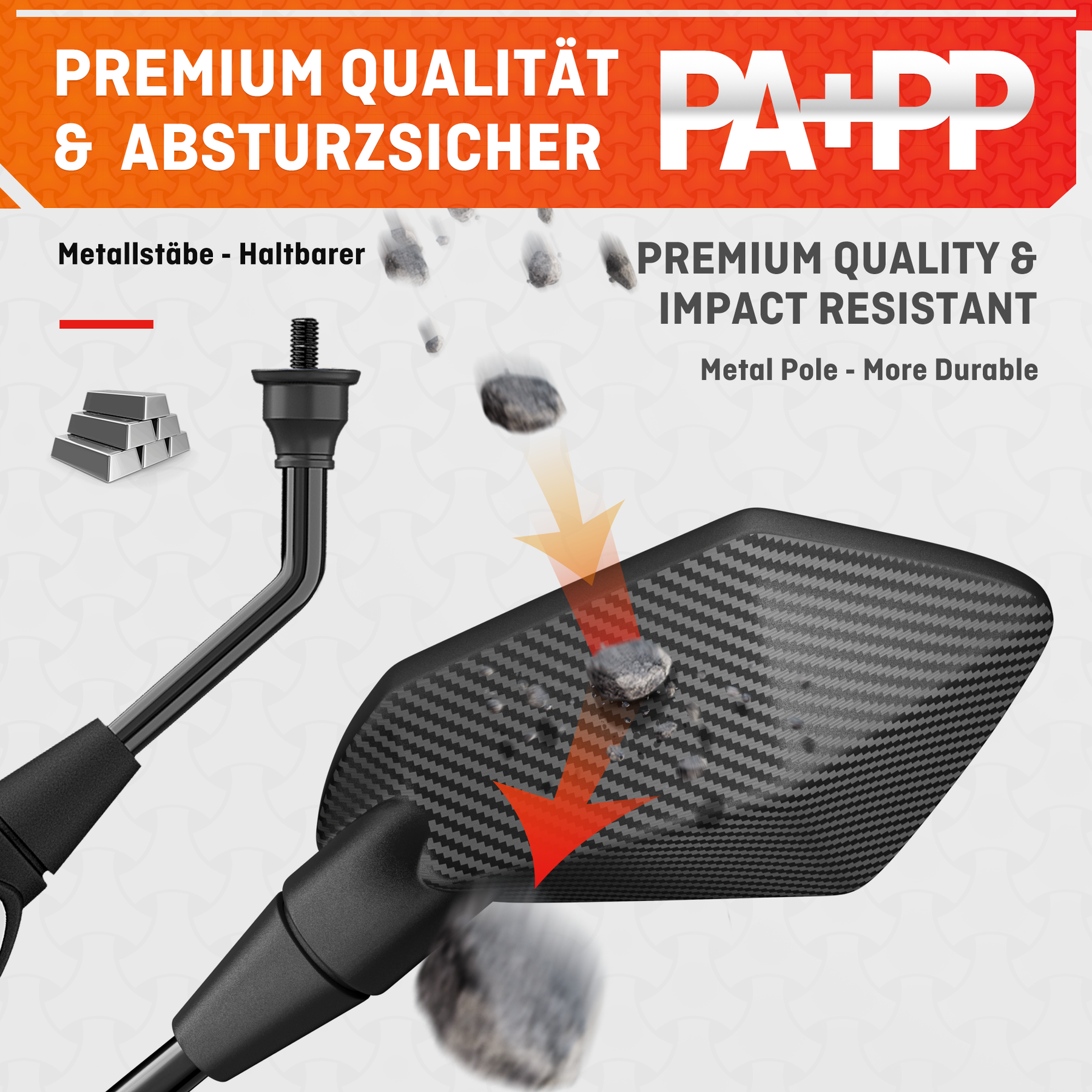 - Stabil und Langlebig: Fahrradspiegel Rückspiegel besteht aus Metallstange und PA+PP Material mit hochschlagfestem Rahmen, der Vibrationen minimiert und den Lenker schützt. HENMI Fahrradzubehör rückspiegel ist für alle Wetterbedingungen geeignet.
