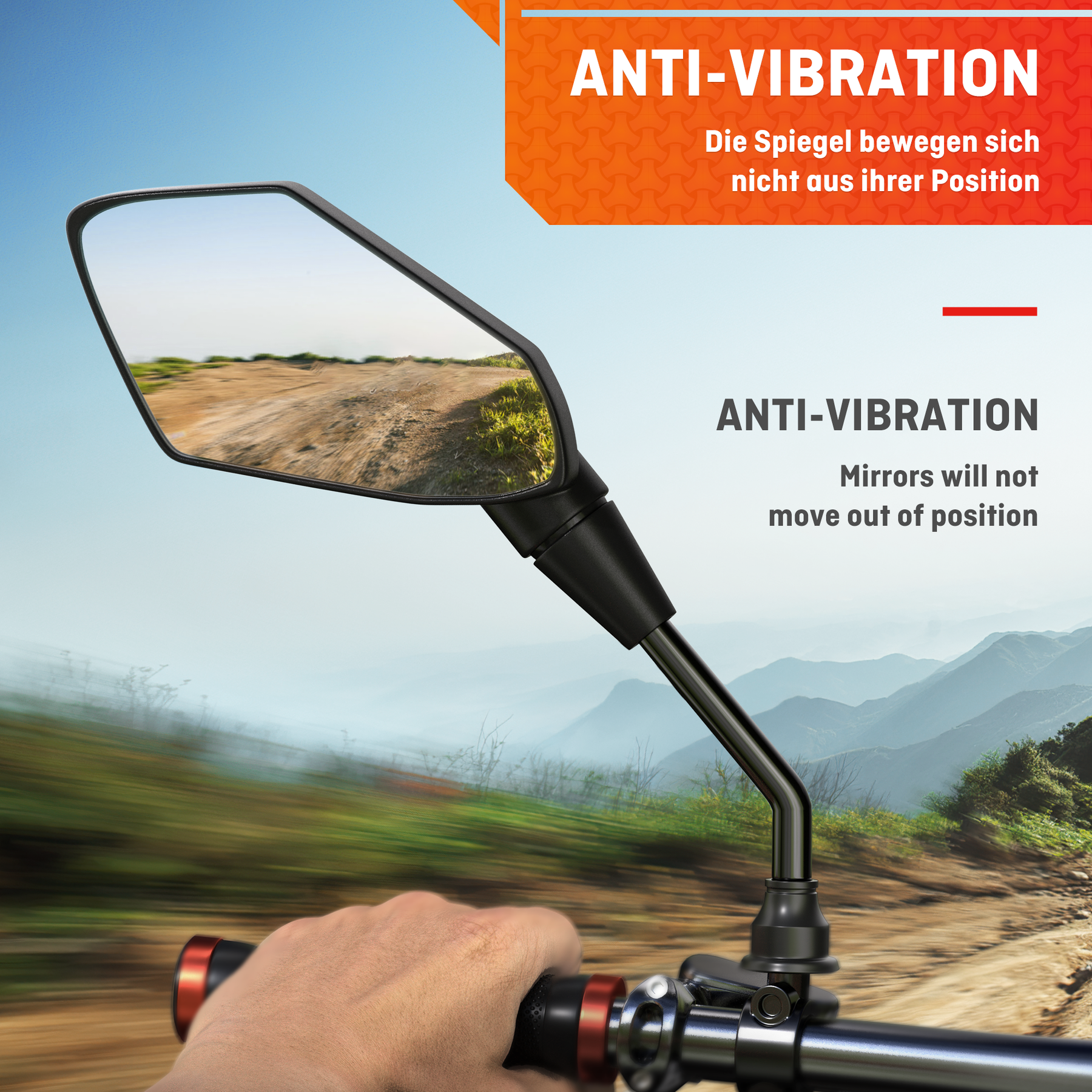 - Einstellbarer Fahrradrückspiegel: Der Winkel und die Position des Fahrradspiegels können ganz einfach an Ihre Bedürfnisse und Fahrgewohnheiten angepasst werden.