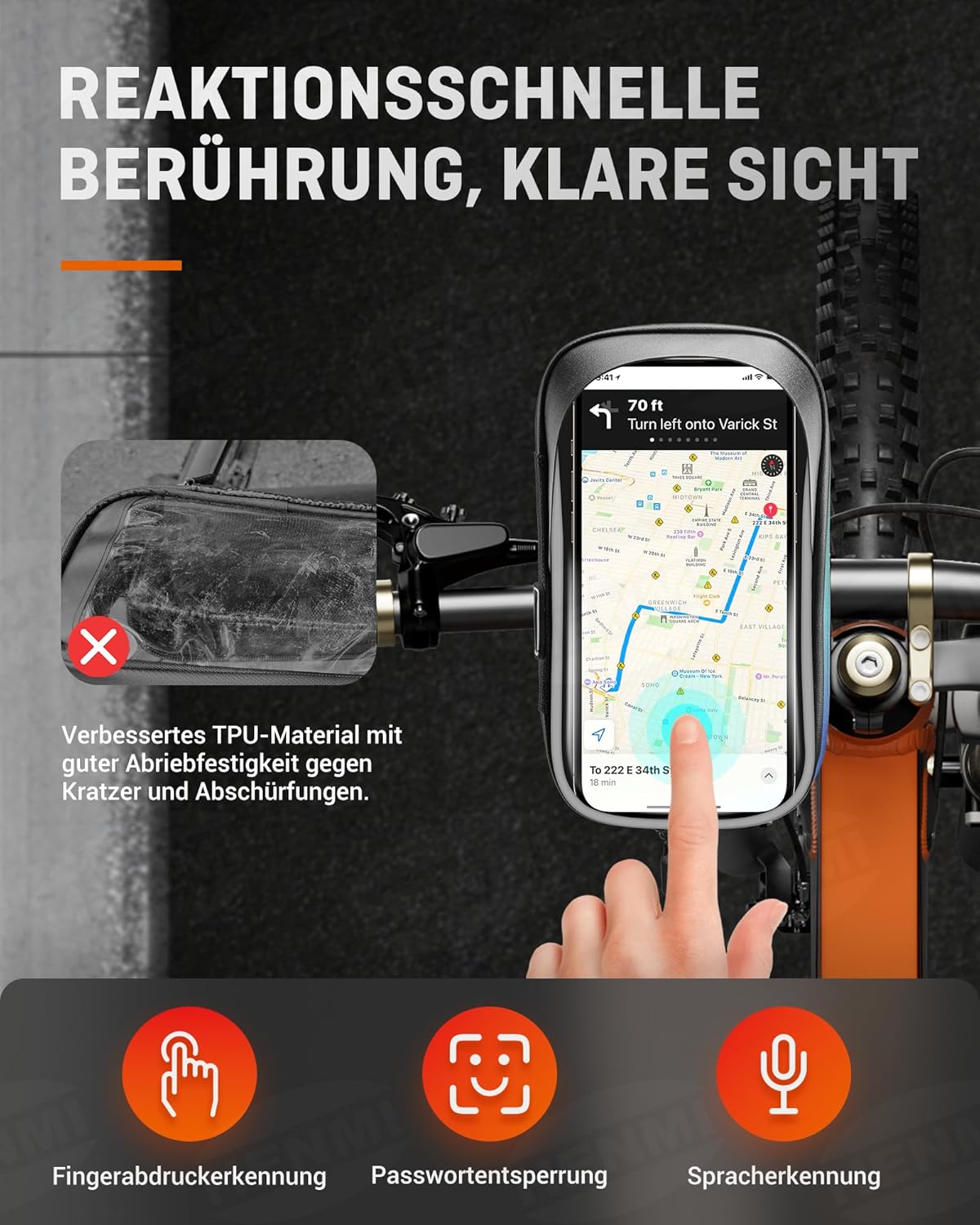 • HOHE SENSITIVITÄT: Die aktualisierte TPU-Material kann das Handy-Bildschirm gut passen und realisieren präzise Touch-Steuerung, die bequem für die Benutzer, ihre Handys während der Fahrt zu bedienen ist. Nicht nur verschleißfest, sondern hat auch eine gute wasserdichte Leistung.TPU Materialoberfläche ist glatt und leicht zu reinigen, wenn es Flecken oder Staub, nur sanft wischen sauber wiederherzustellen.