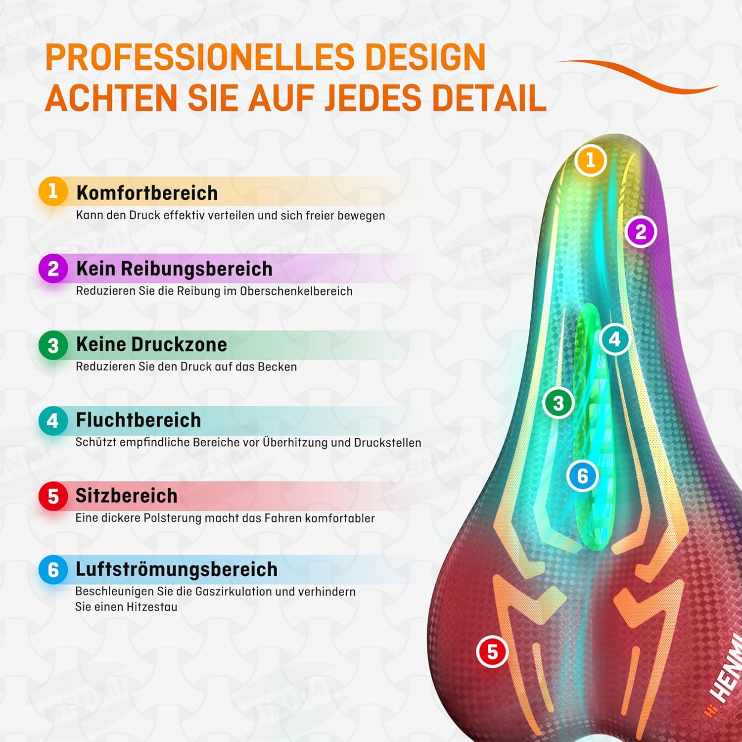 - 【Ergonomisches Design】Das Design passt sich perfekt den Hüften an, bietet beste Unterstützung und verbessert die Sitzhaltung. Die schmale Frontform verhindert Reibungen und reduziert den Druck auf die Sitzknochen, was zu einem gesünderen Fahrgefühl beiträgt.