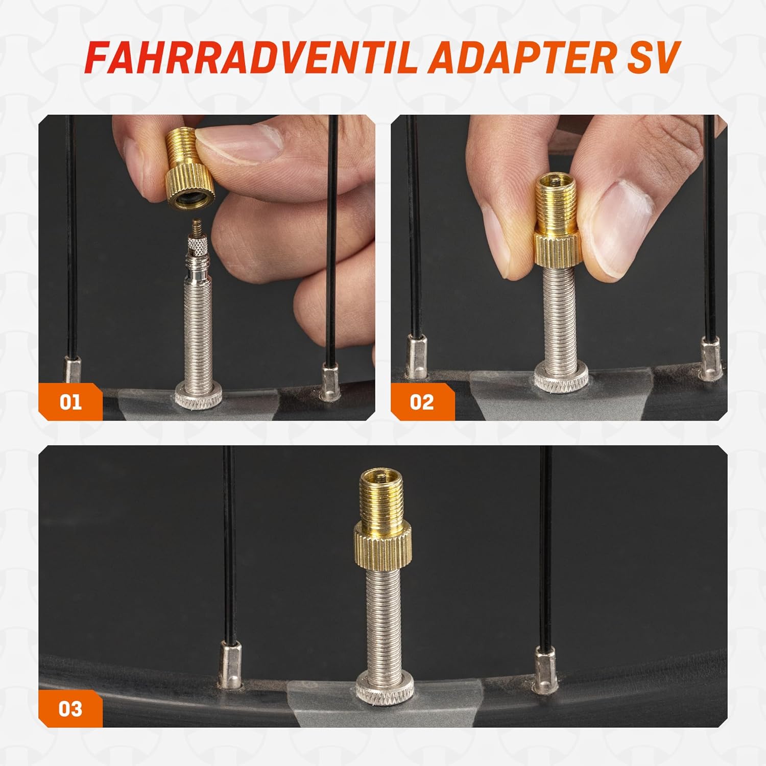 • Lieferumfang - 2x DV/SV Fahrradventil Adapter, 1 Schlüsselanhänger.