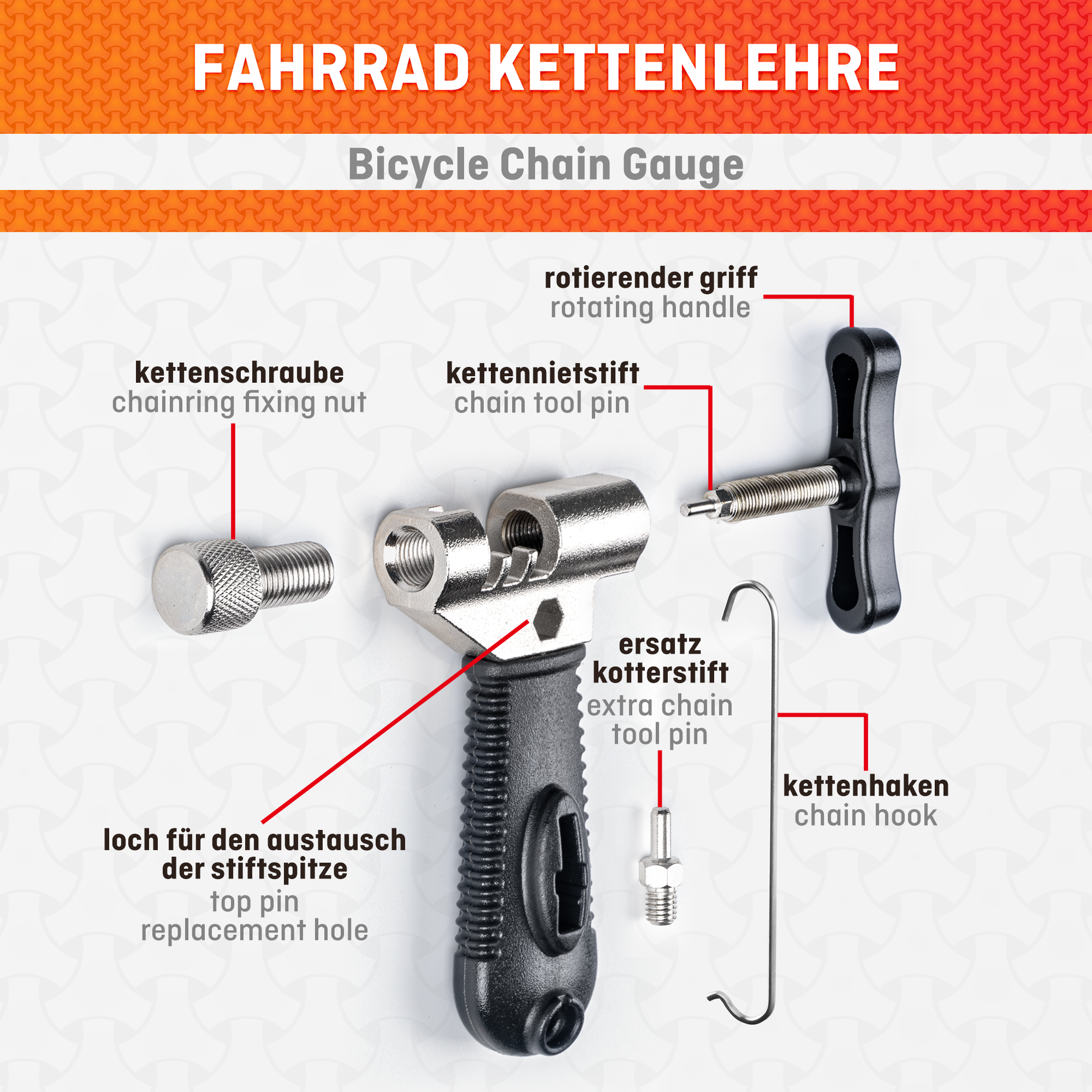 - Kettennieter Fahrrad Set 2.0: Fahrradkette reparatur set 2.0 für alle Ihre Fahrradkette Reparatur. Inklusive kettenschloss zange, Fahrrad Kettennieter, kettenmesslehre, 4 Paar fahrradketten nieten für 6-7-8, 9, 10, 11 Gang Kette und gebrauchsanweisungen. Super praktisch!